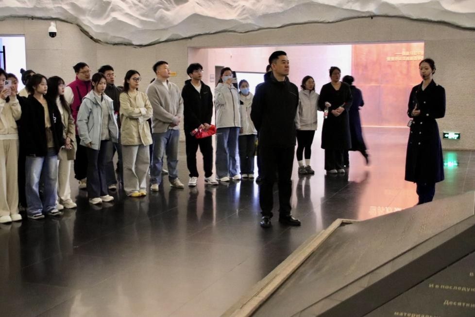 2025年是抗日战争胜利80周年,为落实习近平总书记关于“大思政课”建设的重要指示批示精神,进一步加强爱国主义教育,弘扬红色文化,2025年4月22日上午,沈阳建筑大学马克思主义学院2024级研究生在党总支书记寇福生的带领下走进沈阳“九·一八”历史博物馆,开展“行走的思政课”实践教学活动。