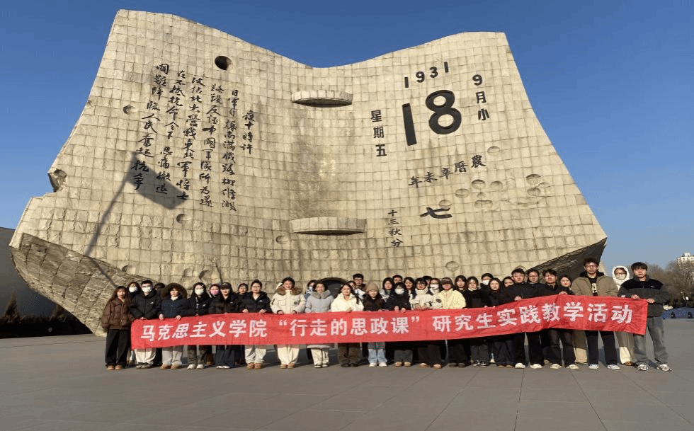 2025年是中国人民抗日战争暨世界反法西斯战争胜利80周年,为贯彻落实习近平总书记关于“大思政课”建设的重要指示批示精神,进一步加强爱国主义教育、弘扬红色文化、赓续红色血脉,按照学校的相关工作要求,马克思主义学院高度重视,精心谋划设计,开展了系列“行走的思政课”活动。12月16日,马克思主义学院教师侯微带领2025级研究生走进九一八历史博物馆,以“实地研学+沉浸式感悟”的形式开展了生动鲜活的“行走的思政课”教学,让青年学子在历史现场回望峥嵘岁月、筑牢爱国根基。