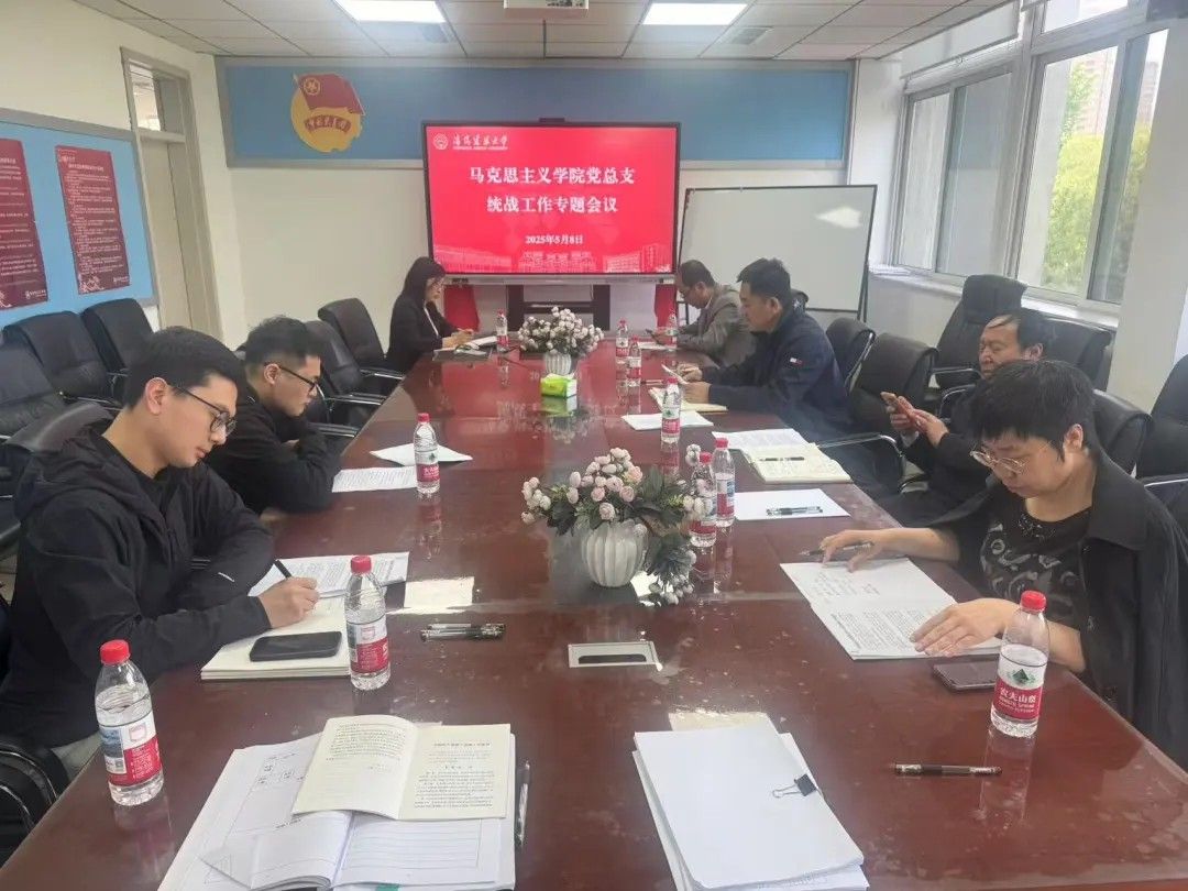 深入贯彻落实习近平总书记关于加强和改进统一战线工作的重要思想,巩固和发展最广泛的爱国统一战线,5月8日下午,马克思主义学院党总支在学院会议室召开2025年统一战线工作会议。学院党总支书记寇福生、院长曹传明、其他党总支委员、党支部书记和组织员参加了会议。会议由党总支书记寇福生主持。