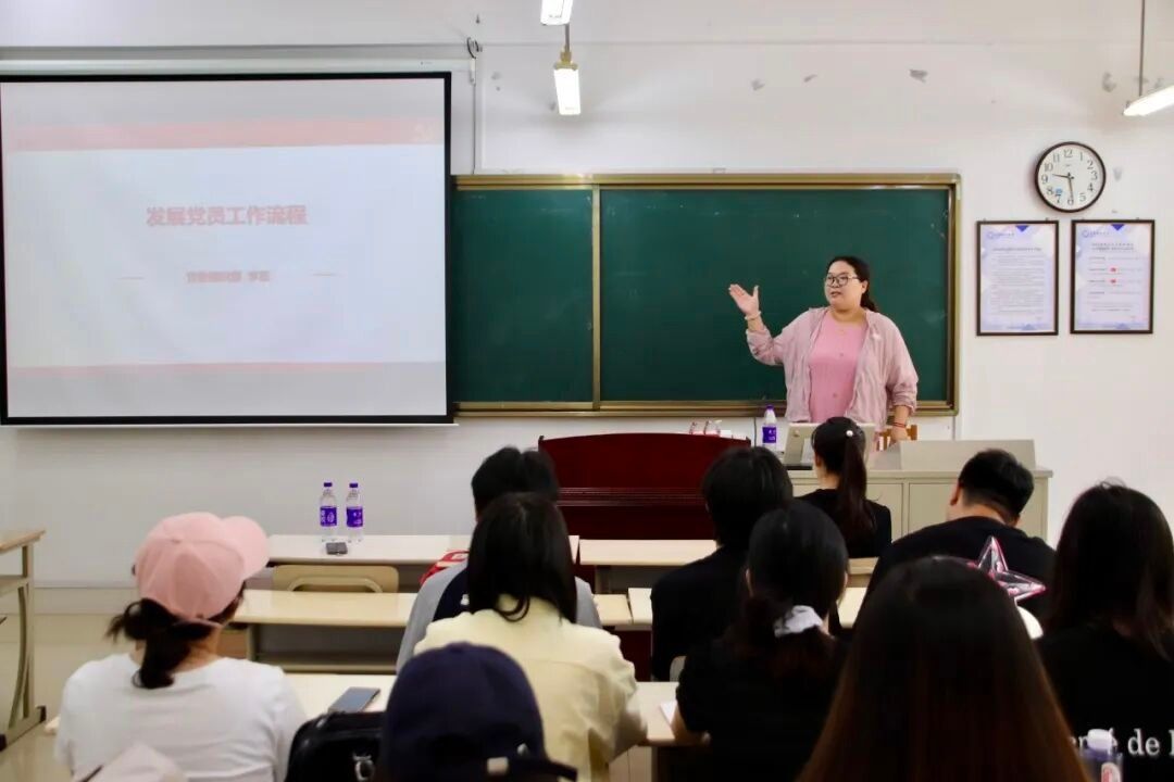 李思以《发展党员工作流程》为题详细介绍了入党的5个阶段25个步骤,从递交入党申请书到成为正式党员的每一个环节,都进行了深入浅出地讲解。她通过细致的说明,让同学们对入党程序有了清晰且全面的认识,解决了入党过程中的诸多疑惑,帮助大家建立从“申请入党”到“成为党员”的全周期认知框架,为同学们指明了努力方向。