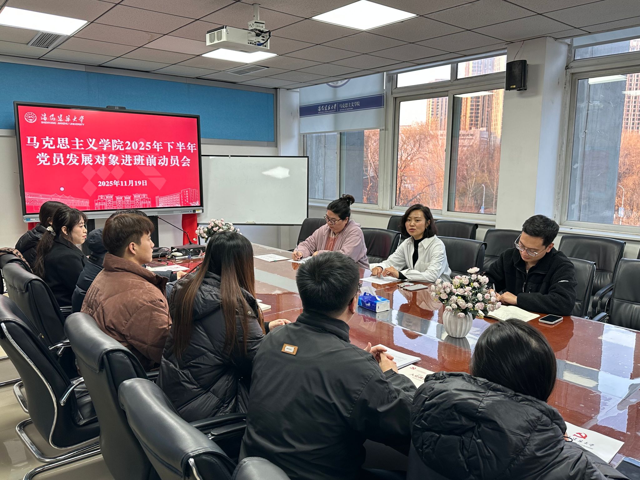 1119日,马克思主义学院在学院会议室召开2025年下半年党员发展对象进班前动员会。学院党委副书记、副院长宋琳奇,组织员、党支部书记及此次即将进班培训的党员发展对象和新生预备党员参加了会议。
