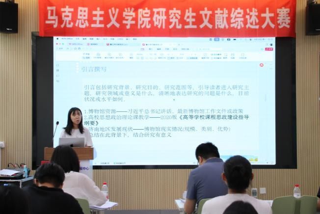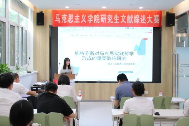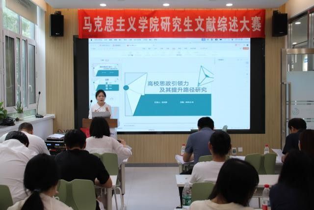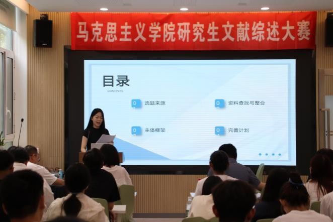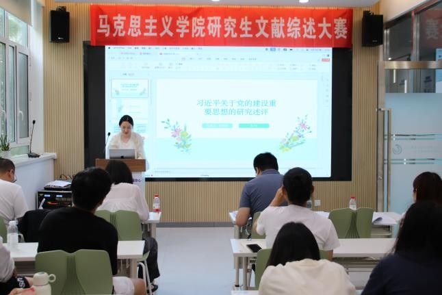 为夯实研究生文献检索与文献综述写作基础,在学院营造浓厚的学术氛围,马克思主义学院于6月16日下午在网络思政中心L119教室举办第一届研究生文献综述大赛汇报会。副院长、思想政治教育方向学科负责人阚迪、马克思主义中国化方向学科负责人顾世春、马克思主义基本原理方向学科负责人任巧华、2024级班主任蔡振东以及2024级全体研究生参加此次活动,阚迪主持汇报会。